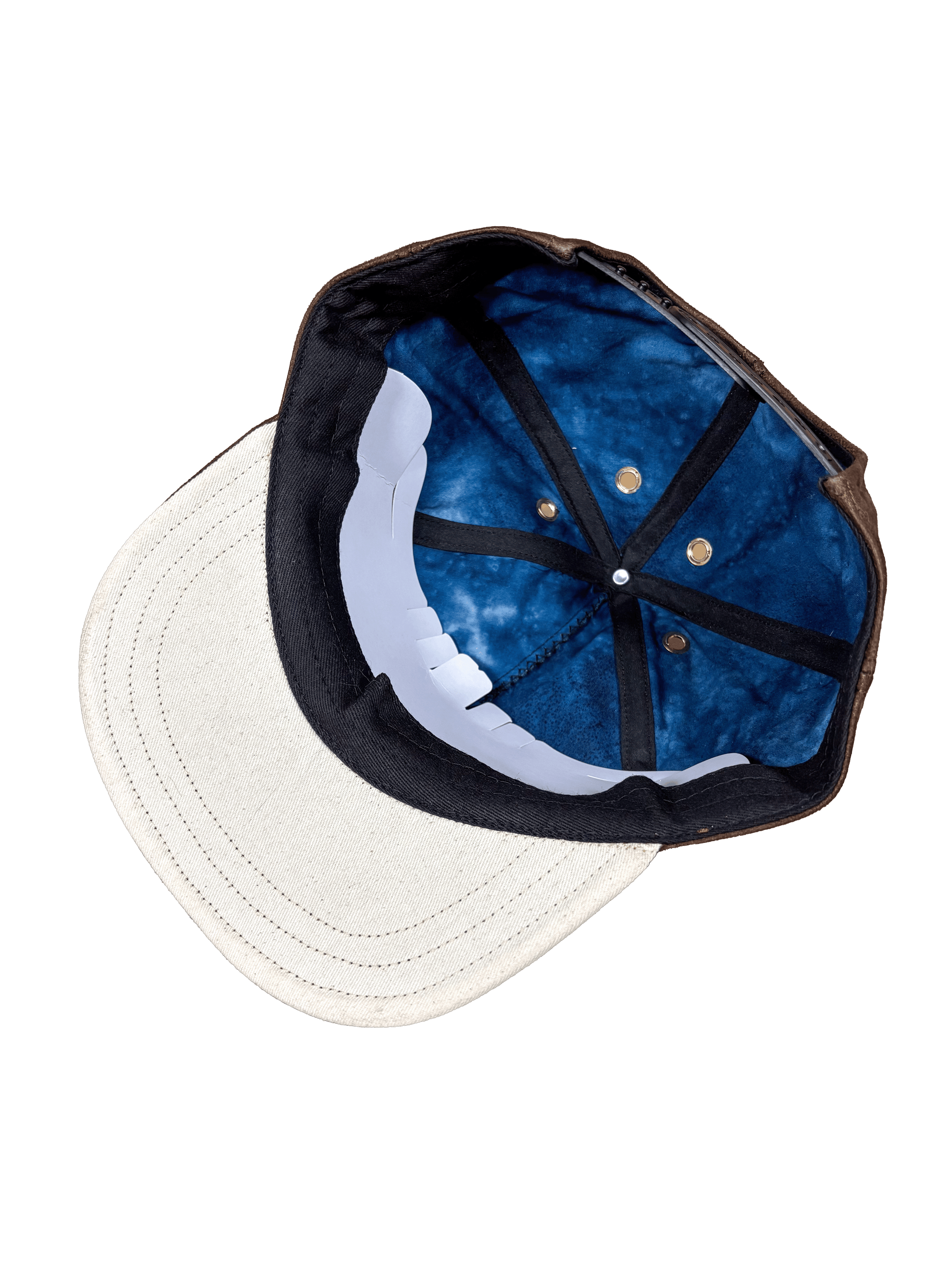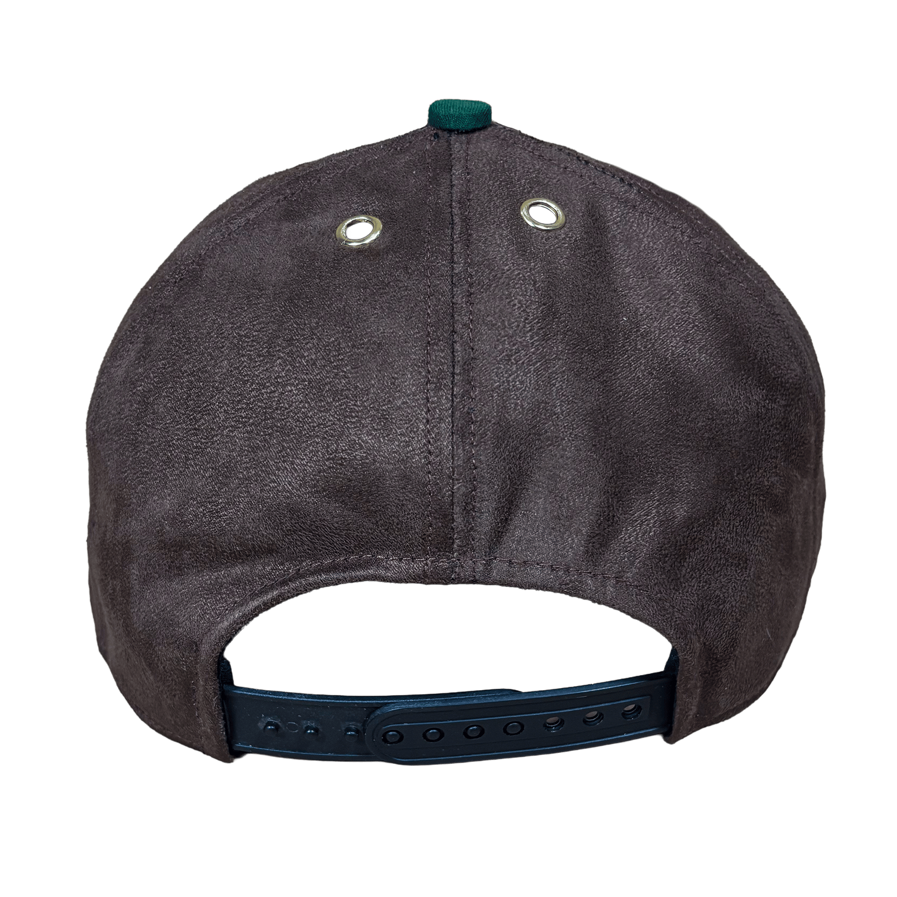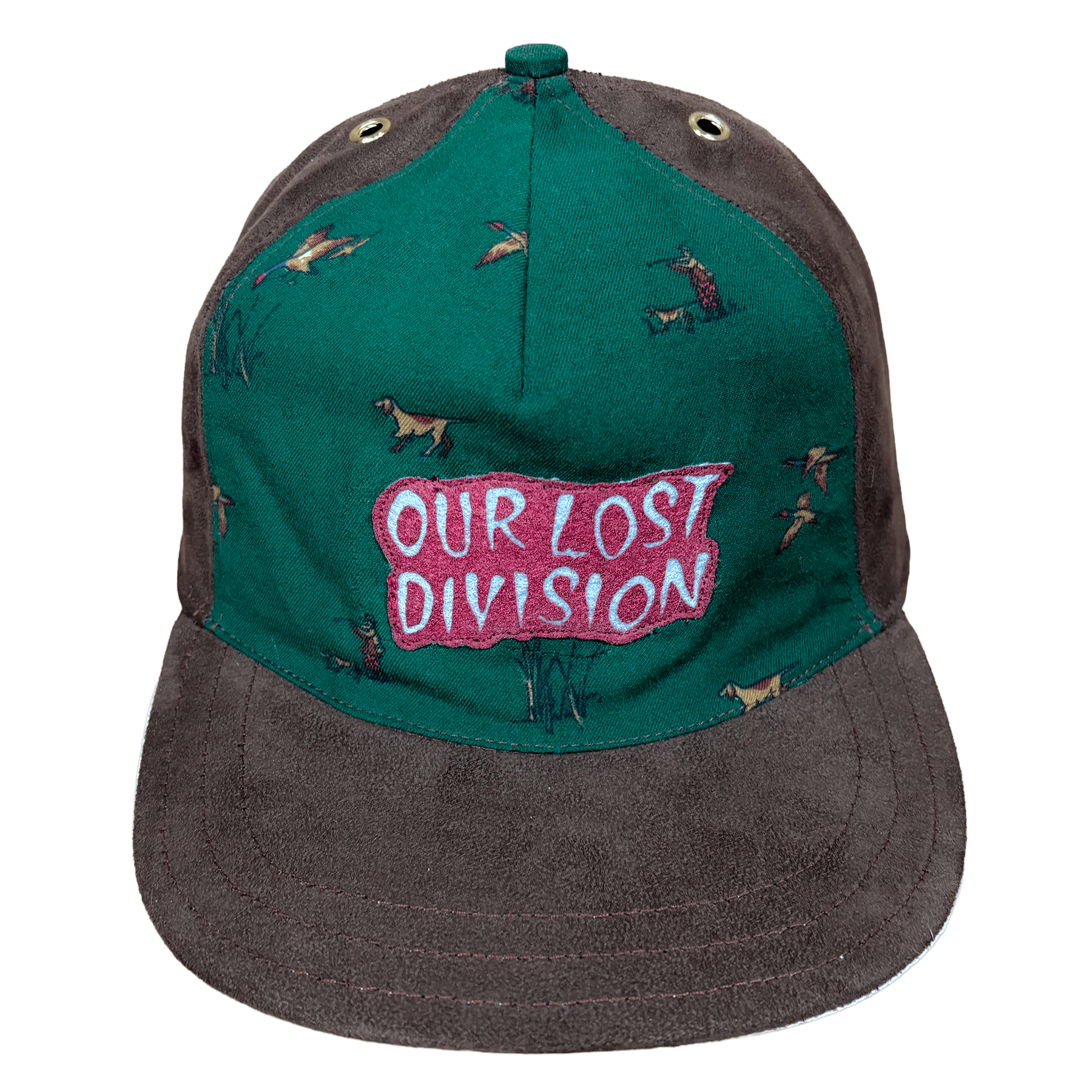 Traditional 5-Panel snapback hat made of vintage suede and hunting themed fabric. Each hat is made to order.